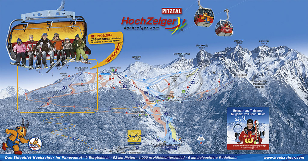 Het Pitztal skigebied heeft 3 grote skipistes: